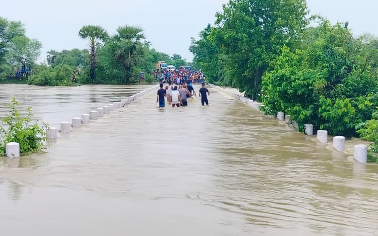 जिले में 10 घंटे तक बारिश होने से बांसलोई व पगला नदी उफान पर देखा गया. वहीं, महेशपुर-पाकुड़िया मुख्य सड़क पर स्थित पगला नदी पर पानी पुल के ऊपर से गजरता देखा गया, जिस कारण घंटों तक महेशपुर-पाकुड़िया का आवागमन बाधित रहा. हालांकि कुछ लोग जान जोखिम में डालकर पुल के ऊपर से गुजरती पानी को पर करते हुए भी दिखे. इसके अलावा भारी बारिश होने के कारण खेत व बहियार में पानी भरा गया.