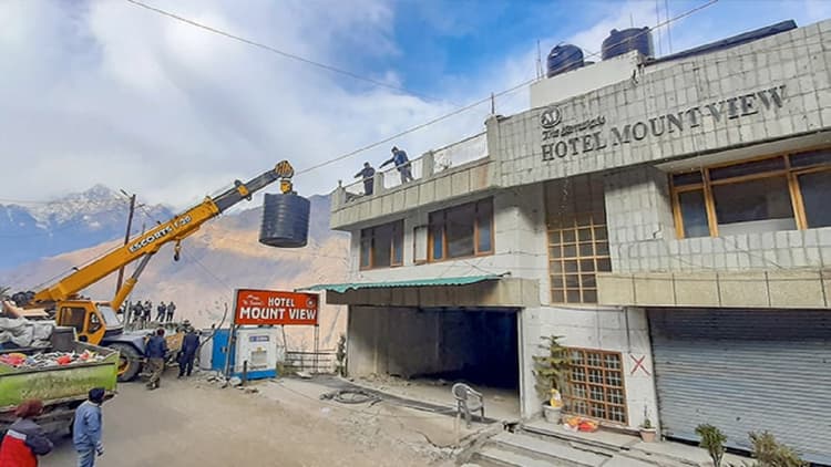 Joshimath Sinking: जोशीमठ में सीबीआरआई के वैज्ञानिकों की देखरेख में होटल माउंट व्यू और मलारी इन को ढहाने की कार्रवाई आज तीसरे दिन रविवार को भी जारी है. होटलों के ऊपरी मंजिल की चौखटें निकाल ली गई हैं. इन सबके बीच, हाईवे पर स्थित दो और होटल कामेट लाज व स्नो क्रिस्ट भूधंसाव के कारण झुक गए हैं और इन होटलों को खाली करने का क्रम शुरू हो गया है. इधर, आज पीएमओ से सचिव मंगेश घिल्डियाल जोशीमठ पहुंचेंगे.