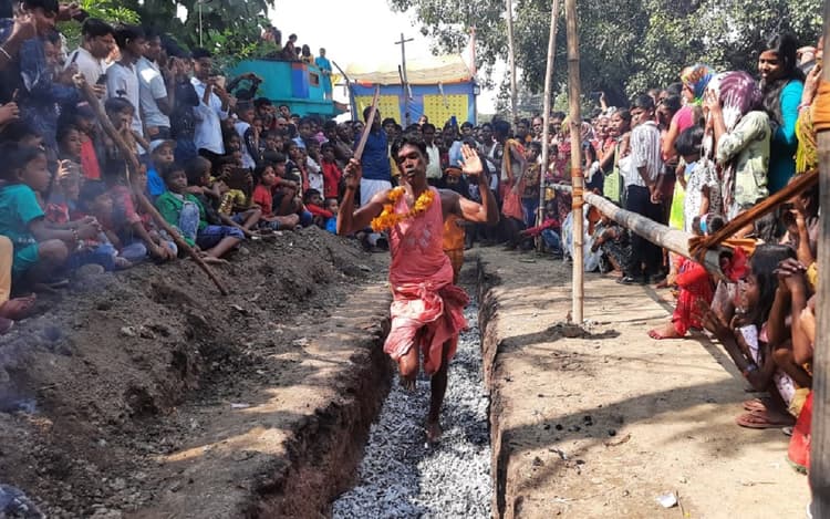 Kali Puja 2022: झारखंड के पश्चिमी सिंहभूम जिले के बंदगांव में मां काली की पूजा के अवसर पर गुरुवार को कराईकेला के बाउरीसाई काली मंदिर परिसर में अग्नि परीक्षा एवं रंजनी फोड़ा कार्यक्रम का आयोजन किया गया. सैकड़ों भक्तों ने गाजे-बाजे के साथ बाउरीसाई तालाब से स्नान कर पूजा-अर्चना की. इस दौरान इन्होंने कलश यात्रा निकाली. मंदिर परिसर पहुंच कर श्रद्धालुओं ने पूजा-अर्चना की. पुजारी शंकर महापात्र ने विधि-विधान से पूजा-अर्चना करायी. इसके बाद वे जलती आग के अंगारों पर नंगे पांव चले. 9 भक्तों ने लोहे से बनायी गयी कील से शरीर में छेद कर रस्सी को आर-पार कर रंजनी फोड़ा की परपंरा निभायी.