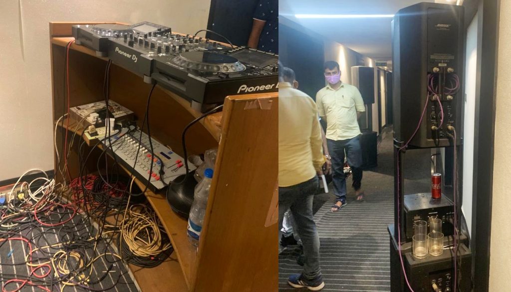 Also Read: कोलकाता की कॉलगर्ल्स ने मेरठ पुलिस के पसीने छुड़ाये, खुद को बालिग बताकर मित्र के साथ होटल में ठहरने की बात कहीपुलिस ने बताया कि होटल से एक मर्सिडीज और एक एसयूवी500 कार को जब्त कर लिया गया. इसके अलावा पायोनियर डीजे डिस्क, एक एम्प्लीफायर, दो साउंड बॉक्स, एक डीजे लाइट, तीन हुक्का, 4 शराब की बोतलें, 4 खाली ग्लास, गांजा की एक पुड़िया, 38 मोबाइल फोन और दो गेस्ट लिस्ट पुलिस ने होटल से जब्त की है.