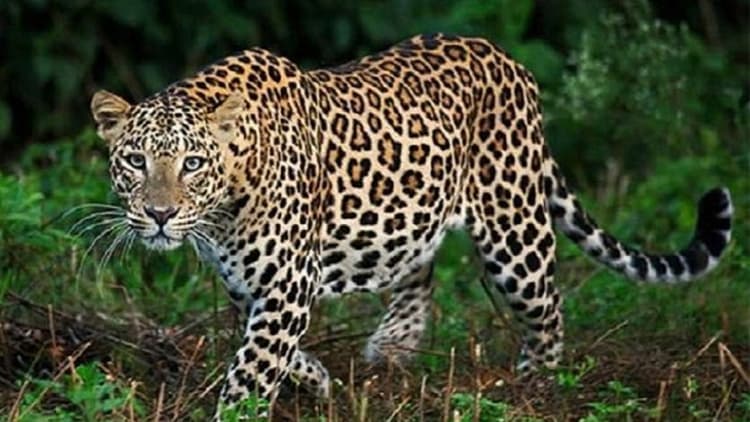 शोर मचाने पर तेंदुआ जंगल की ओर भागा