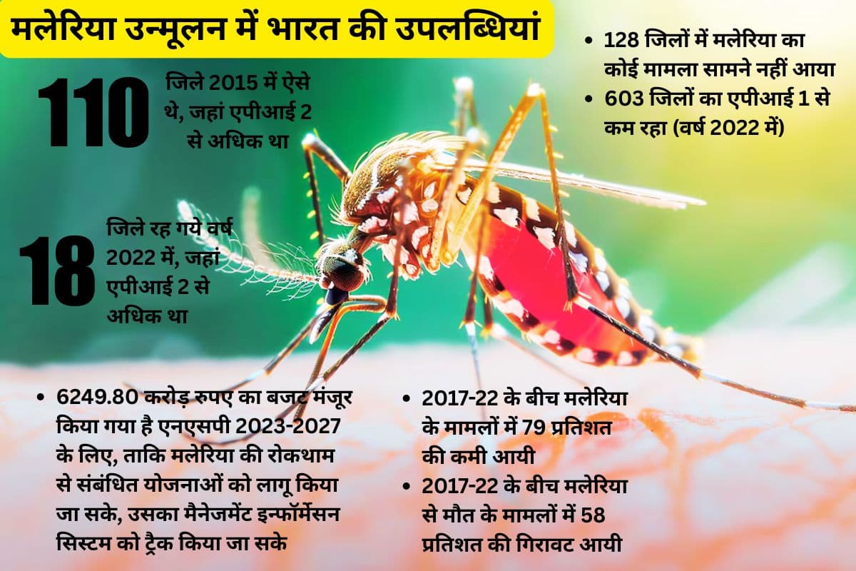 - 2015 से 2022 के बीच में मलेरिया के कुल मामलों में 85 फीसदी की कमी आयी है, जबकि मलेरिया से होने वाली मौतों में 78 फीसदी की कमी आयी है.