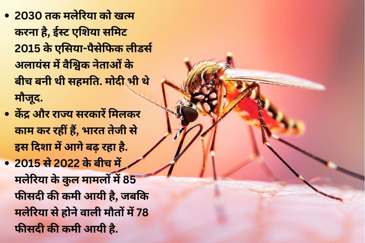 - 2030 तक मलेरिया को खत्म करना है, ईस्ट एशिया समिट 2015 के एसिया-पैसेफिक लीडर्स अलायंस में वैश्विक नेताओं के बीच बनी थी सहमति. मोदी भी थे मौजूद.