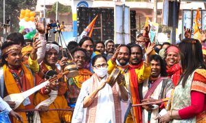 ममता बनर्जी ने चार किलोमीटर का रोड शो भी किया. विश्व भारती के कुलपति पर निशाना साधते हुए तृणमूल कांग्रेस की सुप्रीमो ने कहा, ‘टैगोर की सांस्कृतिक धरोहर को नुकसान पहुंचाने के प्रयासों को पूरी ताकत लगाकर रोकना होगा.’