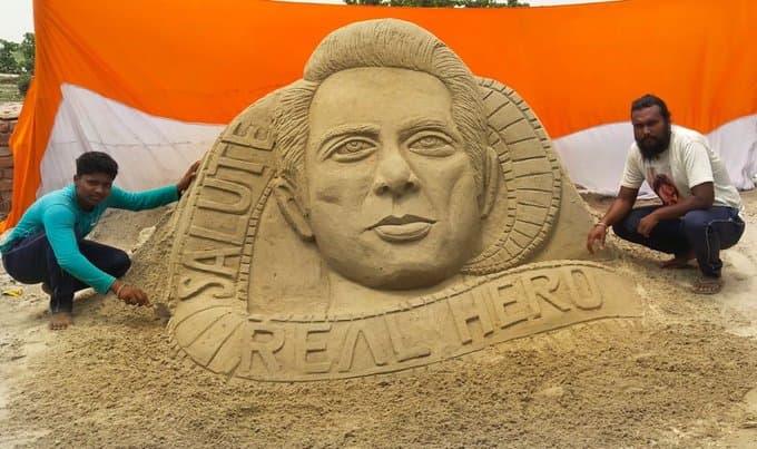 बिहार के छपरा जिले से लोगों ने सोनू सूद को एक अलग तरीके से मदद करने के लिए धन्यवाद कहा. इन लोगों ने रेत पर सोनू सूद की तस्वीर बना दी. जिस पर लिखा रियल हीरो. इस तस्वीर को देखकर सोनू सूद ने भी इस तस्वीर पर उन सभी लोगों का आभार प्रकट किया है.