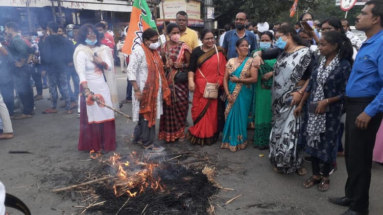 रणधीर वर्मा चौक पर भाजपा महिला मोर्चा की तरफ से मुख्यमंत्री हेमंत सोरेन तथा राज्य के स्वास्थ्य मंत्री बन्ना गुप्ता का पुतला दहन किया गया. सभी लाठी चार्ज करने वाले एसडीएम को हटाने की मांग कर रहे हैं. आपको बता दें कि कल स्वास्थ्य मंत्री बन्ना गुप्ता धनबाद डीसी ऑफिस में बैठक कर रहे थे. इसी दौरान इंटर फेल विद्यार्थी उनसे मिलना चाह रहे थे. इसी दौरान एसडीएम द्वारा लाठीचार्ज करा दिया गया. जिसमें कई विद्यार्थी घायल हो गये थे. उसी के विरोध में आज धनबाद बंद बुलाया गया है.