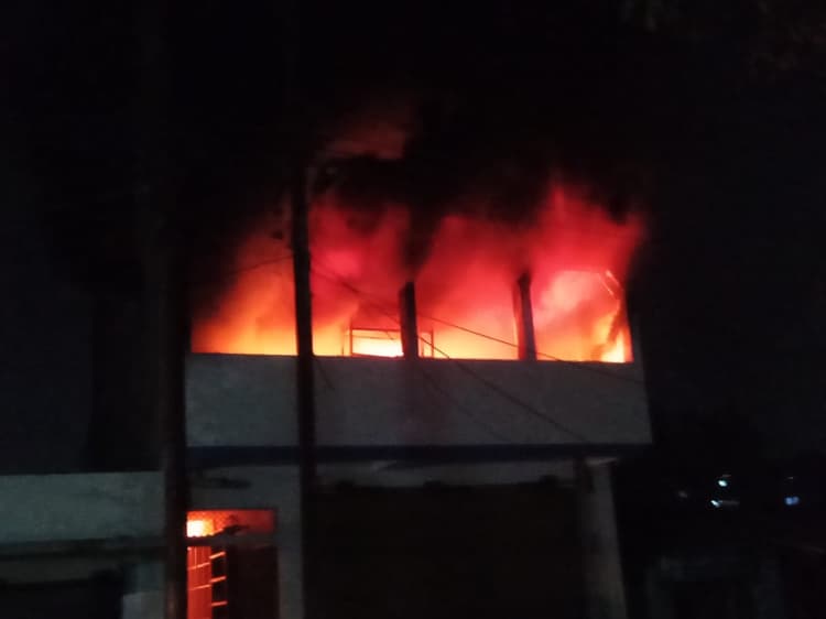सोमवार रात करीब 8:00 बजे उमेश विश्वकर्मा के तीन तल्ला मकान में पहले तल्ले पर सबसे पहले आग लगी. देखते ही देखते आग ने विकराल रूप धारण कर लिया और यह दूसरे तल्ले तक पहुंच गया. अग्निशमन विभाग के दमकल वाहन पहुंच गये हैं और फायर फाइटर्स आग पर काबू पाने में जुटे हुए हैं.
