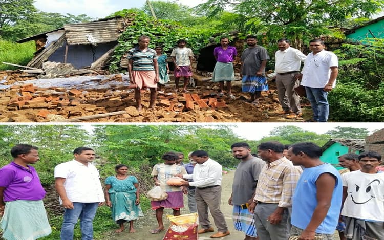 चक्रधरपुर, रवि कुमार : लगातार हो रही बारिश के कारण चक्रधरपुर प्रखंड अंतर्गत जामिद पंचायत के मेरमेरा गांव में आठ लोगों का मिट्टी से बना कच्चा मकान गिर गया है. जिससे लोग परेशान हैं. लोग बेघर हो गए हैं और दूसरे के घरों में शरण लिए हुए हैं. ग्रामीणों ने इसकी जानकारी पूर्व विधायक शशि भूषण सामाड को दी. गुरुवार को पूर्व विधायक शशि भूषण सामाड ने पीड़ित परिवारों से मिलने मेरमेरा गांव पहुंचे. जहां उन्होंने देखा कि कई गरीब लोगों का घर गिर गया है. जिससे लोगों के समझ परेशानी उत्पन्न हो गई है. इसके बाद पूर्व विधायक सामाड ने गांव के आदिवासी टोला निवासी पीड़ित घनश्याम बोदरा को राशन सामग्री उपलब्ध कराई.