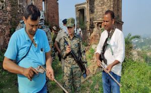 रविवार सुबह 4:00 बजे तक पूरे पहाड़ को मुंगेर पुलिस के जवानों ने घेर लिया था. रविवार को पौ फटते ही पुलिस अधीक्षक लिपि सिंह मेटल डिटेक्टर और डॉग स्क्वायड को लेकर पहुंची और सघन तलाशी अभियान शुरू किया गया. पहाड़ पर उग आए झाड़ियों के अलावा मिट्टी और दीवारों में भी मेटल डिटेक्टर की तरह की मदद से सघन तलाशी अभियान चलाया गया. तलाशी अभियान के दौरान 11 हथियार बरामद किए गए.