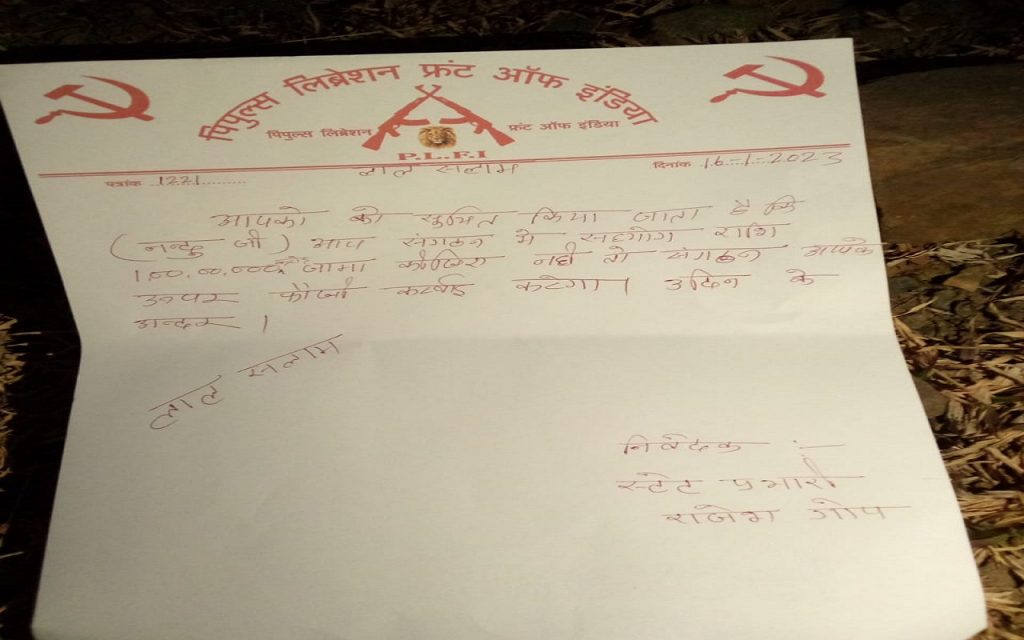 Jharkhand : नक्सली संगठन PLFI के लेटर से हजारीबाग में दहशत, सुरक्षा की कर रहे मांग, जांच में जुटी पुलिस