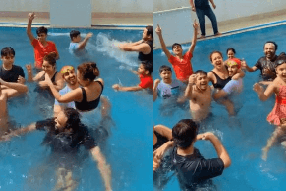 नेहा कक्कड़ ने अपने इंस्टाग्राम पर एक वीडियो फैंस के साथ शेयर किया है. वीडियो शेयर कर कैप्शन में उन्होंने लिखा, मारू पिचकारी होके लेफ्ट, होके राइट!!! परिवार के साथ घर में होली से पहले की मस्ती’. वीडियो में नेहा रोहनप्रीत के साथ पूल में धमाल मचाते हुए दिख रही है. नेहा रोहन के गोद में बैठकर डांस करते हुए दिखी.