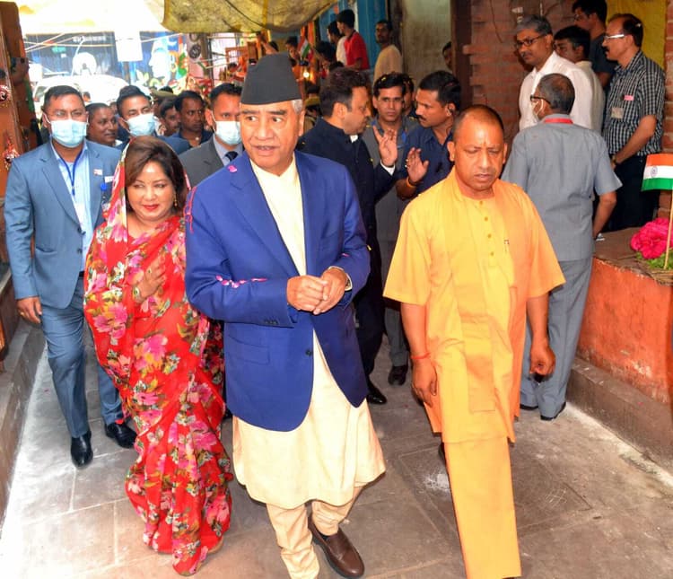 Uttar Pradesh News: नेपाल के पीएम शेर बहादुर देउबा और उनकी पत्नी आरजू राणा आज वाराणसी पहुंचे. वाराणसी एयरपोर्ट पर नेपाल के पीएम शेर बहादुर देउबा और उनकी पत्नी का स्वागत यूपी के सीएम योगी आदित्यनाथ ने स्वागत किया. नेपाल के प्रधानमंत्री के साथ 40 सदस्यो का दल भी बनारस पहुंचा है. लाल बहादुर शास्त्री एयरपोर्ट से नेपाली पीएम शेर बहादुर देउबा और उनकी पत्नी आरजू राणा सड़क मार्ग से सीधे काशी के कोतवाल बाबा काल भैरव मंदिर पहुंचे और बाबा के दरबार में विधिवत पूजन किया.