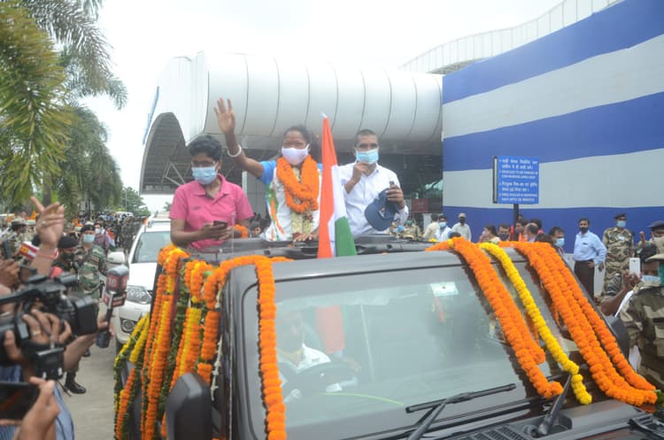 टोक्यो ओलंपिक में इतिहास रचकर लौटीं महिला हॉकी टीम की खिलाड़ी निक्की प्रधान और सलीमा टेटे का रांची पहुंचने पर गर्मजोशी के साथ स्वागत किया गया. दोनों के रांची पहुंचने से पहले बिरसा मुंडा एयरपोर्ट पर हजारों की संख्या में फैन्स ढोल-नगाड़ों के साथ स्वागत के लिए तैयार थे.