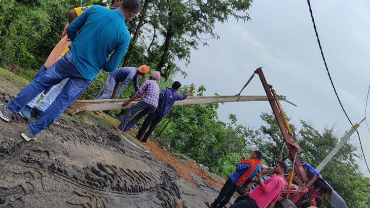 2 दिन से खंभे को लगाने में लगा है विभाग