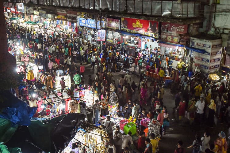 Durga Puja 2020: कोलकाता : दुर्गा पूजा से पहले कोलकाता के मशहूर बाजार लोगों से खचाखच भर गये. यहां अधिकतर लोग मास्क पहनने और सामाजिक दूरी बनाये रखने जैसे कोविड-19 के दिशा-निर्देशों की अनदेखी करते नजर आये. महामारी के दौरान बाजार आने पर सवाल किये जाने पर गृहिणी रिम्पा साहा ने कहा, ‘दुर्गा पूजा है और खरीदारी तो करनी है, चाहे कोरोना हो या नहीं.’