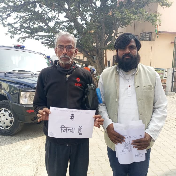 ऐसे में कहीं सुनवाई नहीं होने पर उन्होंने अफसरों को चेताने के लिए खास उपाय किया. वह “मैं जिंदा हूं” कि पर्चे छपवाकर और अपनी समस्या लेकर शनिवार को आगरा के कलेक्ट्रेट स्थित जिलाधिकारी कार्यालय पर पहुंचे. उनके हाथ में लगे पर्चे को देखते ही लोगों ने उन्हें घेर लिया और उनकी समस्या के बारे में जानने लगे. इस पर दीनानाथ ने बताया कि ब्लॉक एत्मादपुर में ग्राम सचिव के पद पर गौरव पाठक तैनात थे. उन्होंने सत्यापन में दीनानाथ को मृत घोषित कर दिया. जिसकी वजह से उनकी पेंशन रुक गई. इसके बाद से वह खुद को कागजों में जिंदा घोषित करने के लिए भागदौड़ कर रहे हैं. लेकिन, किसी ने उनकी समस्या को गंभीरता से नहीं लिया. बाद में जिलाधिकारी की पहल पर उनकी सुनवाई हो सकी.
