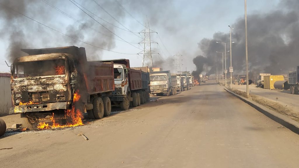 बताया गया कि एनटीपीसी निर्माण में इस्तेमाल के लिए कुछ रासायनिक द्रव्य से भरा टैंकर सोमवार को आया था. जिसे बंदी के कारण आंदोलनकारी इस टैंकर को प्लांट के अंदर जाने से रोक दिया. इस पर उस टैंकर को पुलिस पार कराने का प्रयास करने लगी. इसी को लेकर आंदोलनकारी और पुलिस के जवानों के बीच जमकर झड़प हुई. इस दौरान दोनों तरफ से घंटो पथराव हुआ. इसके बाद आंदोलनकारियों पर पुलिस ने भी जमकर लाठियां भांजी, वहीं आंसू गैस के गोले भी छोड़े. इस दौरान सिम्पलेक्स कंपनी के परिसर में खड़े दो दर्जन से अधिक वाहन एवं दर्जनों महंगी गाड़ियों में आग लगा दी गयी. पुलिस ने वाहनों में आग आंदोलनकारियों द्वारा लगाने की बात कही है.
