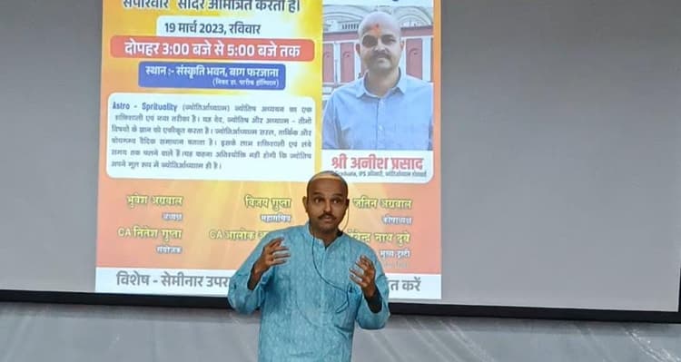 अनीश प्रसाद ने भाग्य और कर्म पर प्रकाश डालते हुए बताया कि भाग्योदय खराब से खराब दशा में भी उदय हो सकता है. अगर मौका नहीं मिलता तो कर्म से प्राप्त कर सकते हैं. कर्म व्यवहार से बनते हैं और यह सब आध्यात्मिक प्रक्रिया है. ज्योतिष उपायों से परेशानी खत्म नहीं होती बल्कि सरल होती है. ज्योतिष में पूर्व जन्म की बहुत मान्यता है और पूर्व जन्म का कर्म हमें भोगना ही पड़ता है.