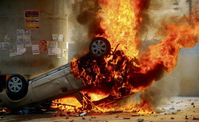 पुलिस की एक गाड़ी व दो बाइक में लगायी गयी आग