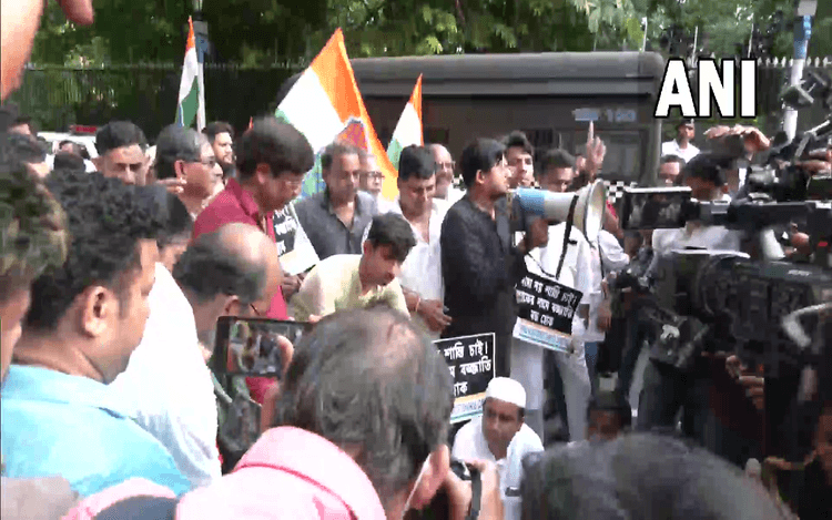 पश्चिम बंगाल में हिंसा की हालिया घटनाओं को लेकर भाजपा के बाद कांग्रेस भी ममता बनर्जी की सरकार पर हमलावर हो रही है. मंगलवार को कांग्रेस कार्यकर्ताओं ने पश्चिम बंगाल सरकार के खिलाफ राजभवन के बाहर विरोध प्रदर्शन किया.