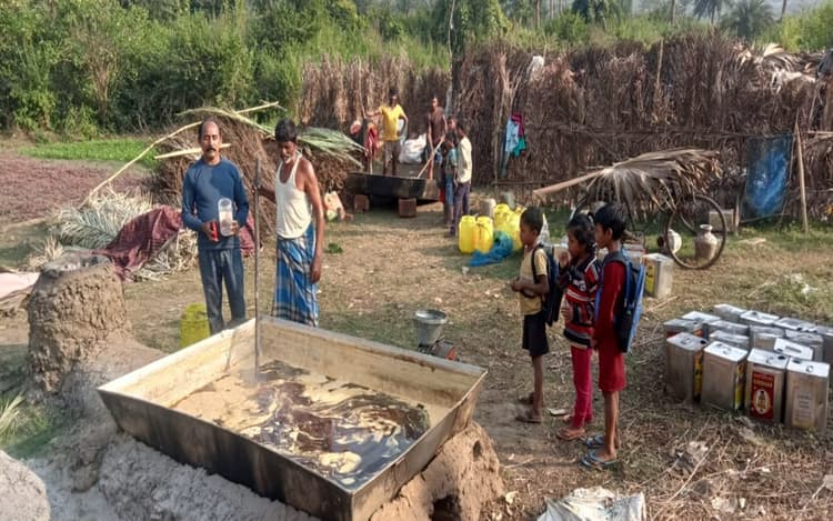 West Bengal: पश्चिम बंगाल के बांकुड़ा से आने वाले खजूर गुड़ के कारीगर काली पूजा से लेकर मकर सक्रांति तक लगातार तीन माह तक गुड़ तैयार करने का यह सिलसिला जारी रहता है. खजूर गुड़ के लिए बंगाल के कारीगर द्वारा अलग-अलग कैंप लगाए जाते हैं. प्रत्येक कैंप में लगभग 4 से 5 टीना तक गुड तैयार किया जाता है. प्रत्येक कैंप में 4 से 5 लोगों का दल होता है. इन लोगों द्वारा खजूर पेड़ पर चढ़कर हड्डी में रस निकालने से लेकर, बड़े बड़े बैग में रस डालकर खजूर गुड तैयार करने तक का कार्य जारी रहता है. खजूर गुड तैयार करने के बाद विभिन्न क्षेत्रों में टीना एवं कार्टून में पैक कर व्यापारी तक गुड़ पहुंचाने का कार्य भी किया जाता है.