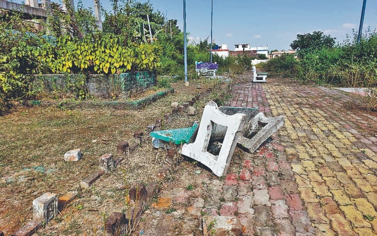 साहिबगंज : शहरवासियों को मनोरंजन के लिए धोबी झरना के निकट नगर परिषद द्वारा करीब एक करोड़ की लागत से बना पार्क बदहाल हो गया है. देखरेख के अभाव व नगर परिषद की उदासीनता के कारण पार्क के सामान क्षतिग्रस्त हो गये हैं. चारों तरफ जंगली घास उग आयी है. पार्क की बदहाली देखने के बाद बच्चे व अभिभावक मायूस होकर लौट जाते हैं. जानकारी के अनुसार जिला मुख्यालय दक्षिणी छोर पर पहाड़ स्थित है, जहां का दृश्य काफी मनोरम है. स्थानीय लोगों की मांग पर नगर परिषद द्वारा धोबी झरना को विकसित कर पार्क बनाया गया था. सौंदर्यीकरण कर बैठने के लिए सीमेंट की पक्की सीट बने थे. बच्चों के खेलने के लिए तरह-तरह के जानवर बनाये गये थे. मुख्य द्वार पर गार्ड रूम भी बनाया गया. पर बड़ी दुखद बात यह है कि योजना पूर्ण होने के बाद उसे स्थानीय लोगों के लिए खोला नहीं गया. न देखभाल की गयी. नगर परिषद से 90 लाख की राशि खर्च की गयी. पार्क का निर्माण कराया गया. कई काम अब भी अधूरा है. बरसात के मौसम में क्रॉस बांध के माध्यम से बड़ी झरना में पानी रुका. बच्चे ने खूब स्नान किया. आनंद उठाया. फिर धीरे-धीरे पहले की तरह झरना में भी मिट्टी भर गया. पार्क का रखरखाव नहीं किया गया. पार्क को सुसज्जित करने के उद्देश्य से आठ हाइ मास्ट लाइट लगायी गयी थी. ताकि बैठने वाले लोगों को किसी प्रकार की परेशानी उत्पन्न न हो. पर लाइट भी कुछ दिन तो जली. अब रोशनी नहीं बिखेर रही है.