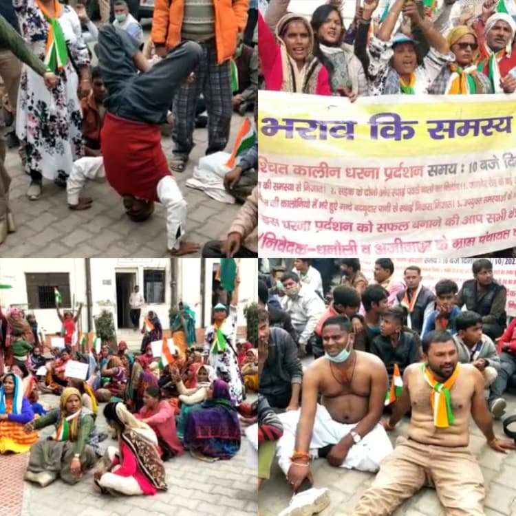 दरअसल, मलपुरा थाना क्षेत्र के धनौली के रहने वाले लोग लंबे समय से जलभराव व खराब सड़क की समस्या से जूझ रहे हैं. उनके क्षेत्र में पक्का नाला ना होने की वजह से गंदा पानी भर जाता है जो कि लोगों के घर में घुसता है. बरसातों में यहां हालत ऐसी होती है कि लोगों के करीब आधे घर गंदगी और पानी में डूब जाते हैं. नाले के लिए 12 अक्टूबर से यह लोग धरना दे रहे हैं, लेकिन अभी तक प्रशासन ने कोई भी सुनवाई नहीं की. प्रदर्शन में लोगों ने भू-समाधि तक ली है, लेकिन प्रशासन सिर्फ आश्वासन के अलावा और कुछ भी नहीं करता.