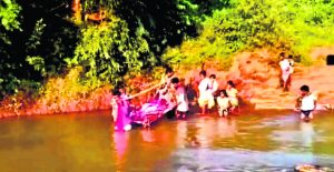सूत्रों ने कहा कि इसके अलावा स्थानीय लोगों को अपनी जान जोखिम में डालकर दूसरी तरफ पहुंचने के लिए नदी पार करनी पड़ती है, जहां एम्बुलेंस इंतजार करती है. नदी पर पुल नहीं होने के कारण अक्सर लोग घुटने भर पानी से होकर दूसरी ओर पहुंचते हैं. सूत्रों के अनुसार एक बुजुर्ग महिला चंद्रिका गौड़ा को गिरने के बाद चोटें आयीं, जिसके बाद परिवार के सदस्यों ने एम्बुलेंस को बुलाया.