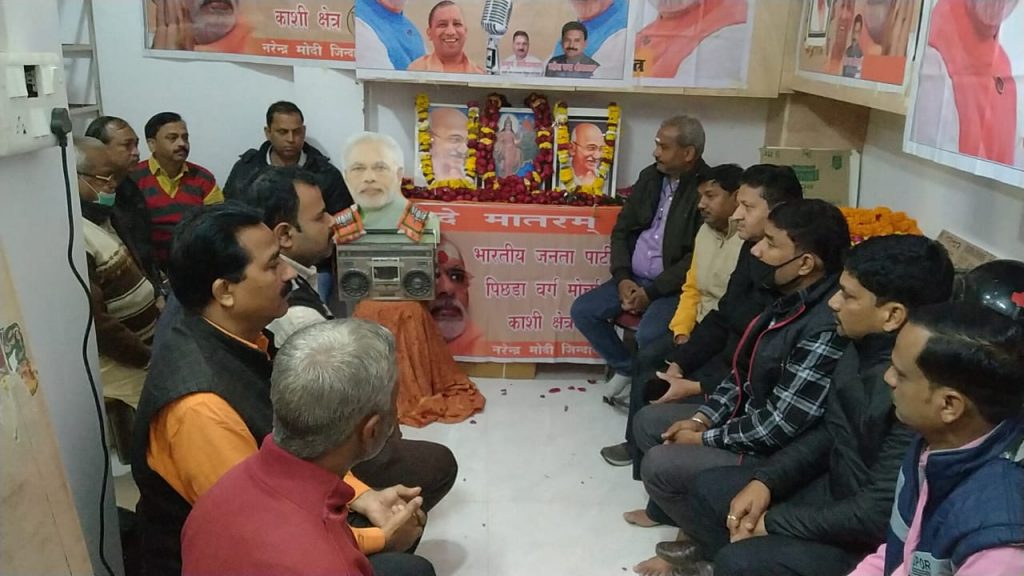 Varanasi News, Mann Ki Baat: भारतीय जनता पार्टी पिछड़ा वर्ग मोर्चा के काशी क्षेत्र के उपाध्यक्ष अनूप जायसवाल व सभी कार्यकर्ताओं ने प्रधानमंत्री नरेंद्र मोदी के मन की बात कार्यक्रम के 82वें संस्करण को वाराणसी के कुदई चौकी क्षेत्र में सुना. इस कार्यक्रम के शुरू होने से पहले सभी कार्यकर्ताओं ने राष्ट्रपिता महात्मा गांधी के पुण्यतिथि के उपलक्ष्य में उनके चित्र पर पुष्पांजलि अर्पित कर उन्हें नमन किया.
