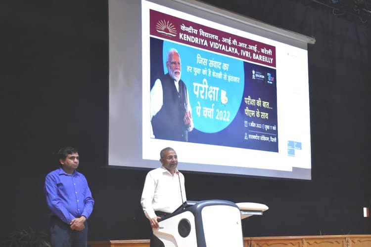भारतीय पशु चिकित्सा अनुसंधान संस्थान (आईवीआरआई) के कैंपस में स्थित केंद्रीय विद्यालय में परीक्षा पर चर्चा कार्यक्रम का सीधा प्रसारण किया गया. इसमें 513 स्टूडेंट, 30 टीचर और 95 अभिभावक समेत तमाम कर्मचारी शामिल हुए. यह कार्यक्रम विवेकानंद सभागार में प्रोजेक्टर के माध्यम से स्टूडेंट को कार्यक्रम दिखाया गया. पीएम ने स्टूडेंट से कहा अपने मन को स्थिर रखकर मेहनत व लगन से परीक्षा की तैयारी करें. पीएम के बहुमूल्य सुझावों को आत्मसात करने की सलाह दी गई.