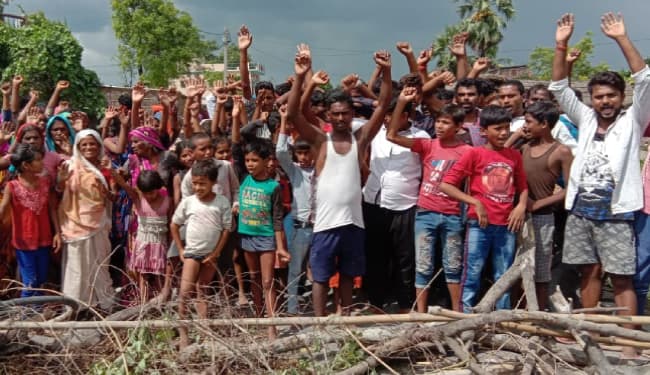 थानेदार की बात से भड़के ग्रामीण, सड़क पर उतरीं महिलाएं