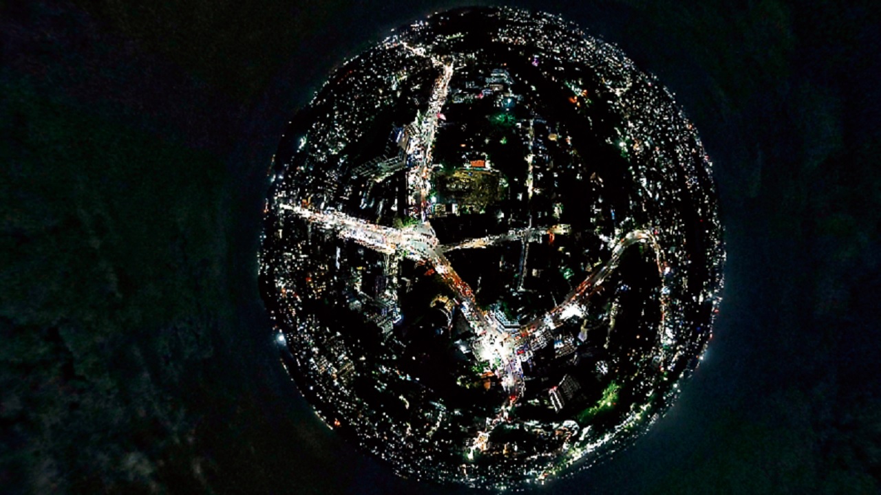 धनबाद शहर का बैंकमोड़ इलाका शाम ढलते ही कुछ-कुछ आकाशगंगा की तरह दिखने लगता है. 360 डिग्री का यह ग्लोब फोटो लगभग 250 फीट की ऊंचाई से ड्रोन कैमरे से हमारे छायाकार प्रतीक पोपट ने खींचा है. इसमें रंग-बिरंगी रोशनी से नहायी सड़कें किसी सर्पिल सीढ़ी की तरह दिखायी देती हैं.