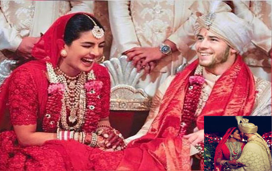 प्रियंका द्वारा शेयर की गई पहली तस्वीर में कपल को एक-दूसरे को पकड़े हुए देखा जा सकता है, दूसरे तस्वीर में उनके हाथों का क्लोज-अप है, तीसरी फोटो में प्रियंका को अपने लाल लहंगे के घूंघट के पीछे से आगे की ओर दिखाया गया था, चौथी फोटो में उनके द्वारा ‘मंडप’ की ओर जाते हुए दिखाया जा रहा है, और अंतिम तस्वीर में वरमाला समारोह के दौरान एक बड़ी भीड़ देखी जा सकती है.