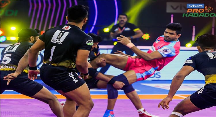 प्रो कबड्डी लीग सीजन (Pro Kabaddi League ) 8 के 65वें मुकाबले में तेलुगु टाइटंस (Telugu Titans ) ने जयपुर पिंक पैंथर्स (Jaipur Pink Panthers) को 34 के मुकाबले 35 प्वाइंट से हराया. इसके साथ ही तेलुगु टाइटंस ने मौजूदा सीजन में पहली जीत भी दर्ज कर लिया.