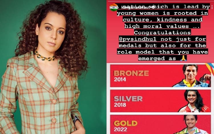 कंगना ने 2014 (कांस्य पदक), 2018 (रजत पदक), और नवीनतम (स्वर्ण पदक) में सिंधु की तस्वीरें साझा कीं. कंगना ने लिखा, “युवा महिलाओं के नेतृत्व में एक राष्ट्र संस्कृति, दया और उच्च नैतिक मूल्यों में निहित है. पीवी सिंधु को न केवल पदकों के लिए बल्कि उस रोल मॉडल के लिए भी बधाई, जो आप बनकर उभरी हैं.”
