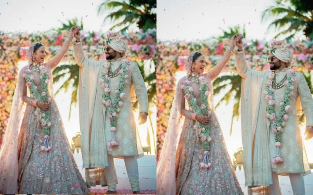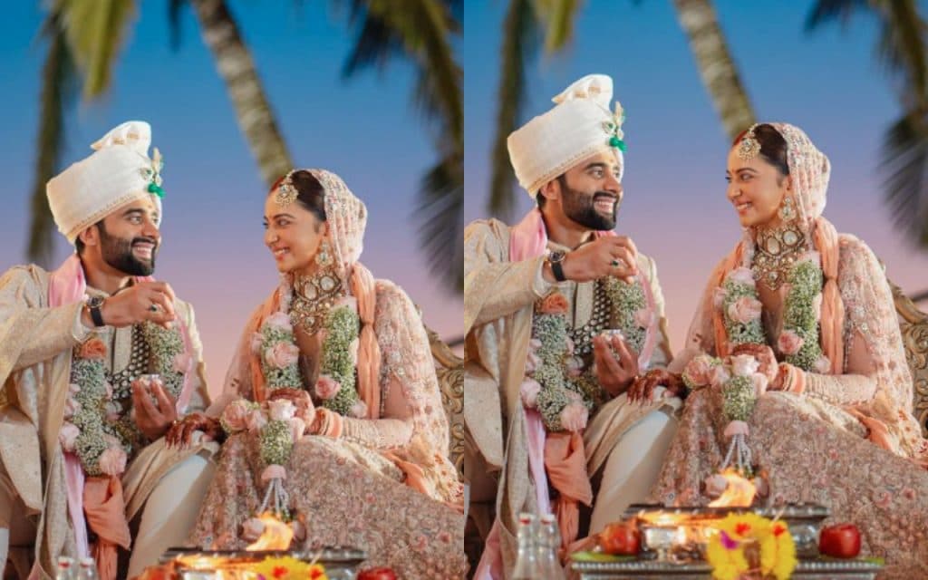 रकुल और जैकी के आउटफिट्स को तरुण तहिलियानी ने डिजाइन किया था. कपल ने सिख धर्म के रीति-रिवाजों के अनुसार शादी की और फिर सिंधी धर्म के तहत शादी हुई.