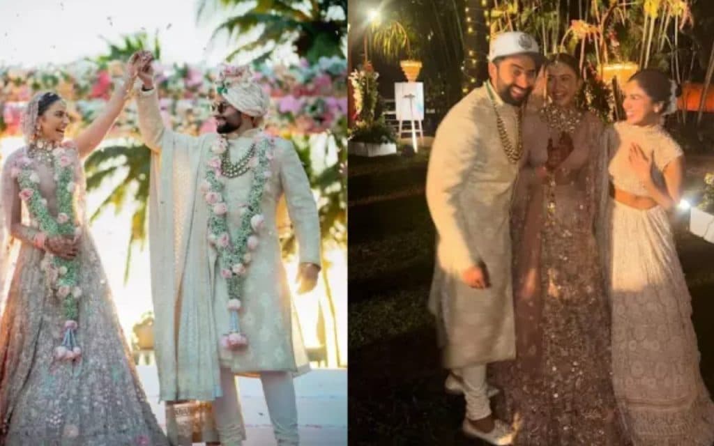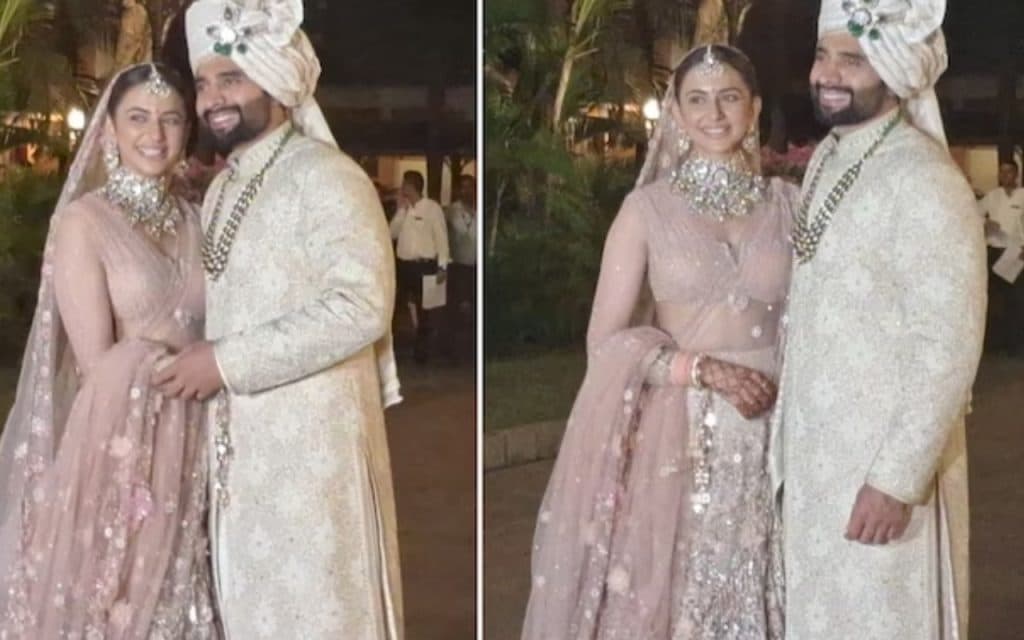शादी के बाद रकुल प्रीत सिंह और जैकी भगनानी मीडिया से मिले. उन्होंने मीडिया के सामने पोज भी दिया. जैसे ही पैपराजी ने उन्हें बधाई दी, वे मुस्कुराए और तस्वीरों के लिए पोज दिए.