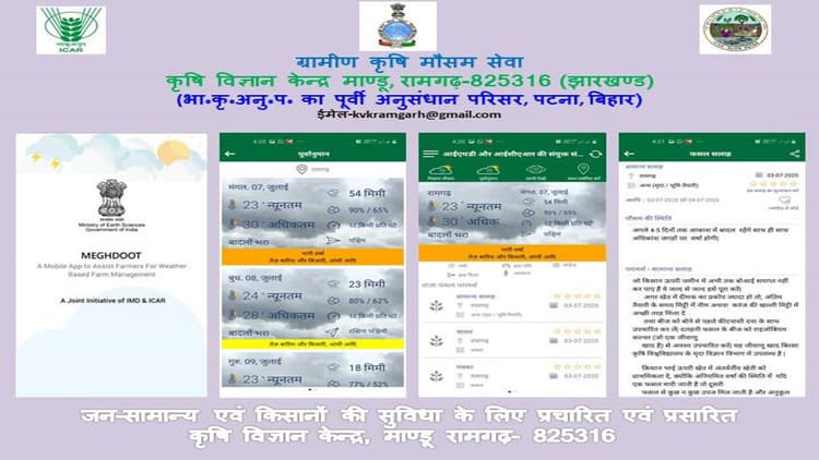केंद्र के मौसम वैज्ञानिक सनी आशीष बालमुचु ने मेघदूत एप के बारे में बताया कि मेघदूत एक मोबाइल एप है. यह भारत मौसम विज्ञान विभाग (आईएमडी), भारतीय उष्ण कटिबंधीय मौसम विज्ञान संस्थान (आईआईटीएम) और भारतीय कृषि अनुसंधान परिषद (आईसीएआर) की संयुक्त पहल का नतीजा है.