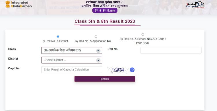 रोल नंबर और जिले के नाम का उपयोग करना