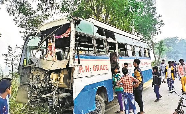 Road Accident Due To Fog In Bihar Latest News बरातियों से भरी बस शुक्रवार की आधी रात को पलट गयी. इस हादसे में एक किशोर की मौत हो गयी. जबकि, 11 बराती घायल हो गये. घायलों में कई बच्चियां भी शामिल हैं. हादसा गोपालपुर थाने के खालगांव के पास गंडक नहर पर हुआ. मृतक किशोर की पहचान गोपालपुर थाने के बड़हरा बरइपार गांव निवासी जवाहिर चौहान के 14 वर्षीय पुत्र विवेक उर्फ टेगर के रूप में की गयी.
