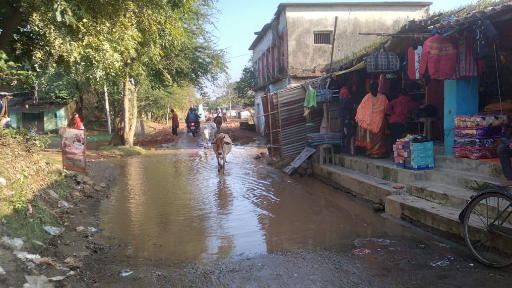 ईचागढ़ गांव की सड़क पर पानी जमा होने से आवागमन में दिक्कत हो रही है. स्कूलों बच्चों को पठन-पाठन प्रभावित हो रहा है.