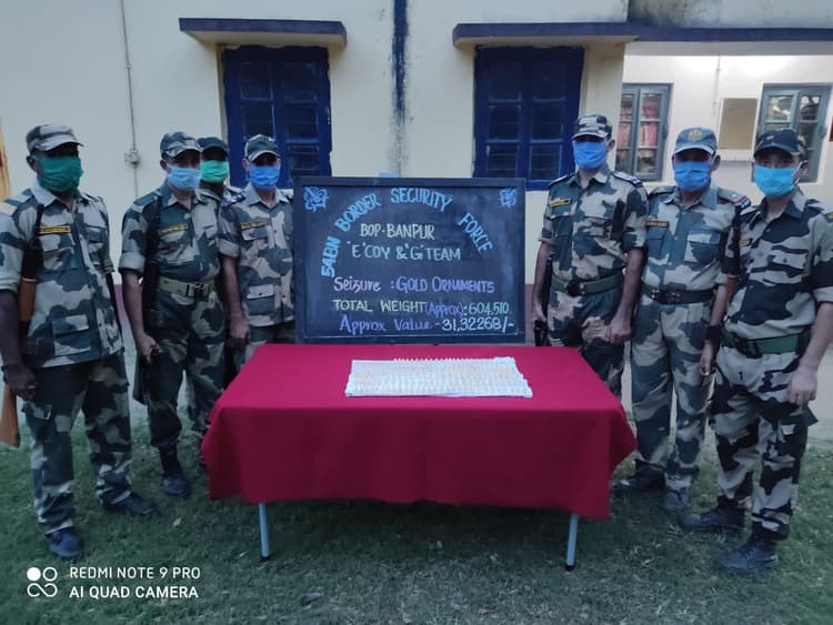 कोलकाता (अमित शर्मा) : दक्षिण बंगाल फ्रंटियर एवं सीमा सुरक्षा बल (बीएसएफ) के जवानों ने एक बार फिर तस्करी की कोशिश को नाकाम करते हुए सोने के गहने बरामद किये हैं. गहनों का वजन करीब 654.51 ग्राम है, जिसकी कीमत लगभग 31.32 लाख रुपये है.