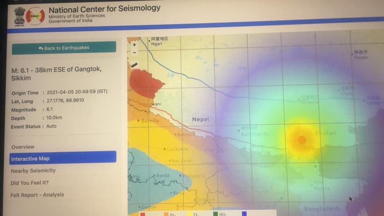 बंगाल में चुनावी उथल पुथल के बीच धरती हिल गयी है. मौसम विभाग अलिपुर के निदेशक गणेश कुमार दास ने इस भूकंप की पुष्टि करते हुए बताया कि भूकंप का केंद्र सिक्किम से 38 किलोमीटर दूर गैंगटॉक में था. सतह से इसकी गहराई किलोमीटर नीचे थी. रिक्टर स्केल पर इसकी तीव्रता 5.4 मापी गयी है.