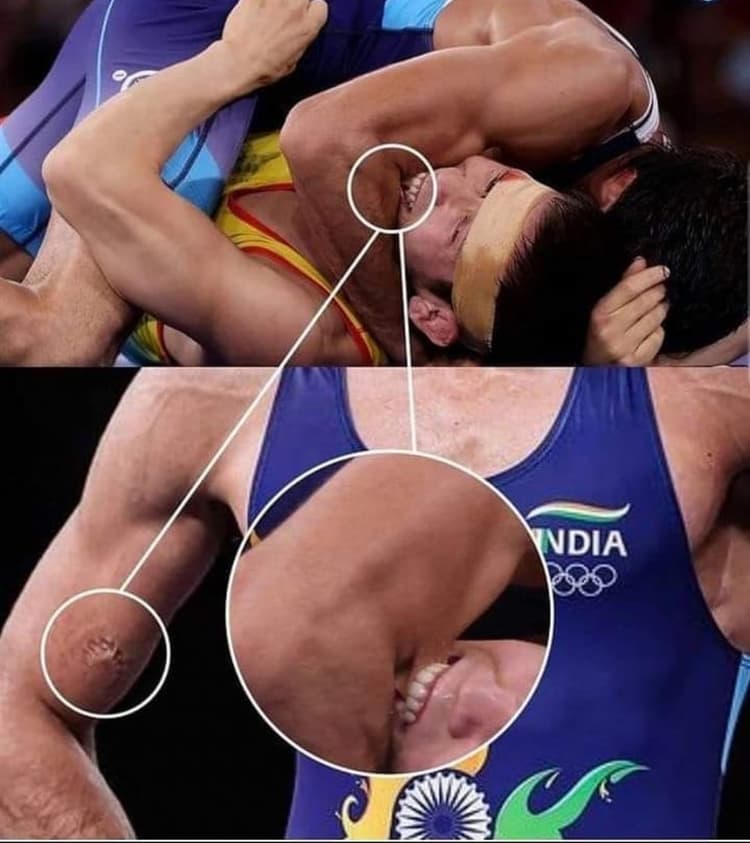 सेमीफाइनल मुकाबले में एक मौका ऐसा आया जब कजाकिस्तान के नूरिस्लाम सनायेवे ने अपने उपर से 23 साल के रवि को हटाने के लिए उनका दांत से काटा लेकिन ये भारतीय खिलाड़ी अपनी जीत सुनिश्चित करने के लिए डटा रहा. इस घटना की तसवीरें अब सोशल मीडिया पर तेजी से वायरल हो रही है. इन तसवीरों को देख कर लोग का गुस्सा कजाकिस्तान के पहलवान पर फूट पड़ा है. पूर्व क्रिकेटर वीरेंद्र सहवाग ने इन तस्वीरों को शेयर करते हुए लिखा, ये कितना गलत है लेकिन इसके बावजूद खिलाड़ी रवि के जोश को दबा नहीं सका.