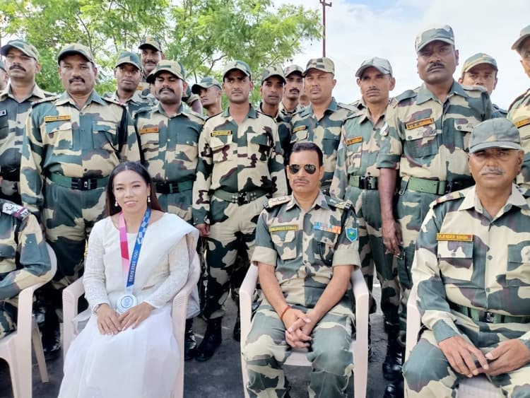 Tokyo Olympics 2020, Mirabai Chanu : ओलिंपिक की भारोत्तोलन स्पर्धा में पदक के लिए भारत का 21 वर्ष का इंतजार खत्म करने वाली मीराबाई चानू अपने पदक के साथ भारत लौट चुकीं हैं. स्वदेश वापसी के बाद मीरा बाई चानू का लगातार स्वागत किया जा रहा है. टोक्यो ओलंपिक में अब तक देश के एक मात्र पकद दिलाने वाली शनिवार को सीमा पर BSF जवानों से मिलने पहुंचीं. मीराबाई चनू शनिवार को मणिपुर के इंफाल में अपने पैतृक गांव नॉन्गपोक के नजदीक स्थित सीआई पोस्ट दामोदर पहुंचीं. यहां उन्होंने बीएसएफ जवानों के साथ वक्त बिताया.