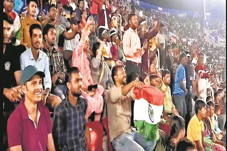 वहीं स्टेडियम में प्रवेश करने से पहले दर्शकों को अपने गालों पर तिरंगा का टैटू बनाते देखा गया. मैच शाम के सात बजे से शुरू होने के कारण शाम के पांच बजे से ही यहां पर दर्शकों की भीड़ जुटनी शुरू हो गयी थी. सभी दर्शक स्टेडियम के अलग-अलग गेटों पर तिरंगे के साथ नजर आये. साथ ही लोगों को अपने गालों पर तिरंगे का टैटू बनवाते समय काफी उत्साहित देखा गया.