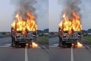 शॉर्ट सर्किट से ट्रक में लगी आग
