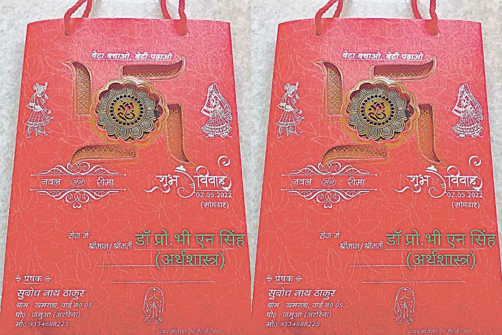 पूर्णिया में अनूठा शादी का कार्ड, नशामुक्ति के लिए कार्ड पर दिया बेटा बचाओ बेटी पढ़ाओ का संदेश