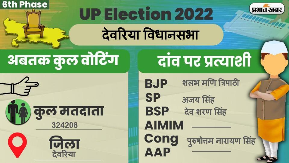 UP Chunav 2022: उत्तर प्रदेश विधानसभा चुनाव 2022 के चुनावी दंगल जारी है. पांचवे चरण के बाद आज छठे चरण का मतदान हुआ. देवरिया जिले में आने वाले देवरिया सदर विधानसभा सीट पर भी छठे चरण में मतदान हुआ. देवरिया जिले में शाम पांच बजे तक 51.50 प्रतिशत मतदान हुआ. मौजूदा समय में देवरिया जिले की सात विधानसभा सीटों में से 6 पर भारतीय जनता पार्टी, तो एक पर समाजवादी पार्टी का कब्जा है.