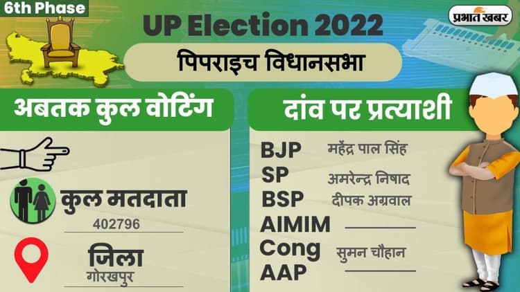 गोरखपुर जिले की पिपराइच विधानसभा सीट पर 2017 के विधानसभा चुनाव में 63.66 वोट पड़े. इस चुनाव में भारतीय जनता पार्टी से महेंद्र पाल सिंह ने बहुजन समाज पार्टी के आफताब आलम उर्फ गुड्डू भैया को 12809 वोटों के अंतर से हराया था. 2022 के विधानसभा चुनाव में बीजेपी ने महेंद्र पाल सिंह पर फिर से भरोसा जताया है, जबकि सपा ने अमरेन्द्र निषाद, बसपा ने दीपक अग्रवाल और कांग्रेस ने सुमन चौहान को चुनावी मैदान में उतारा है.